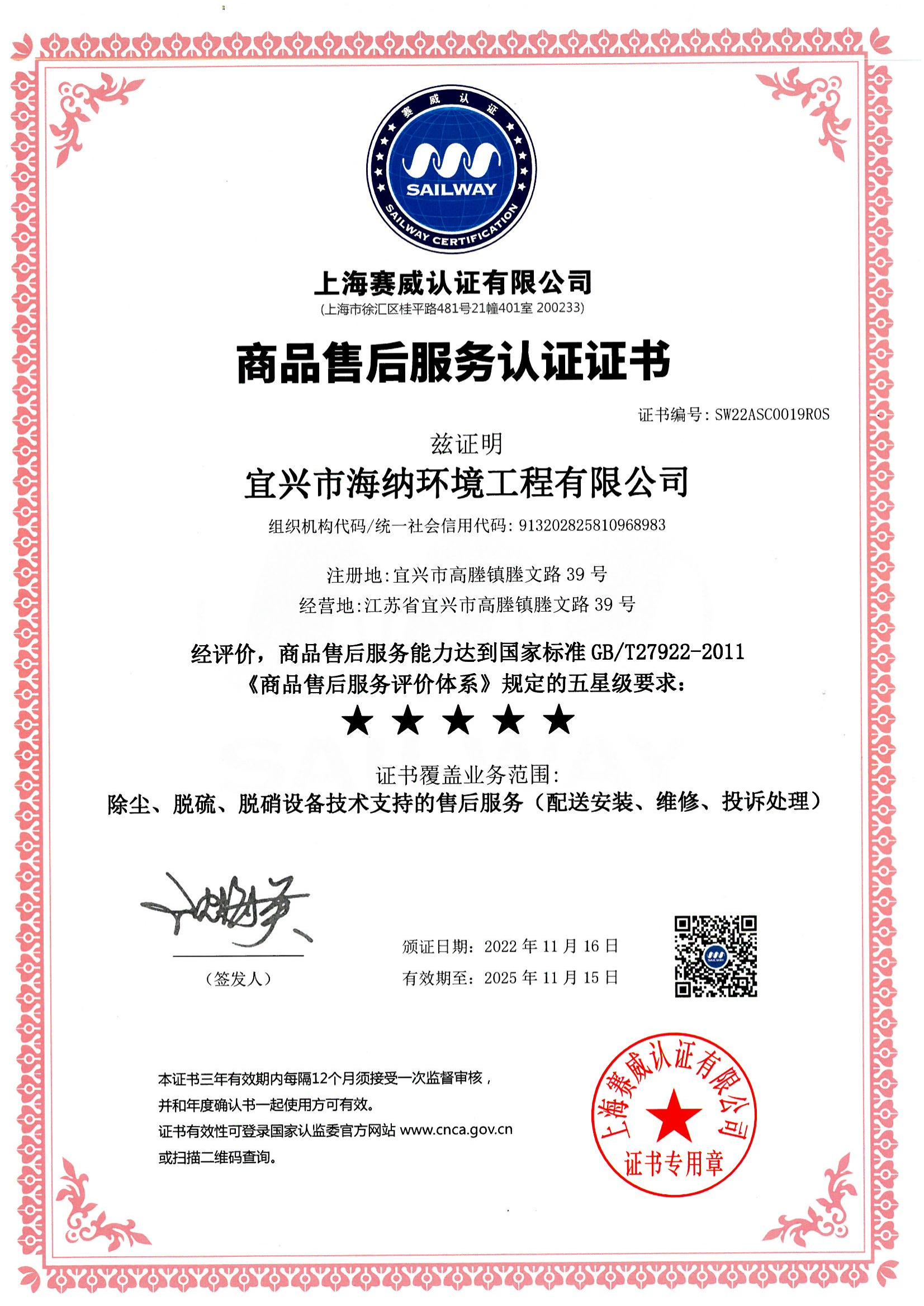 售后服务证书