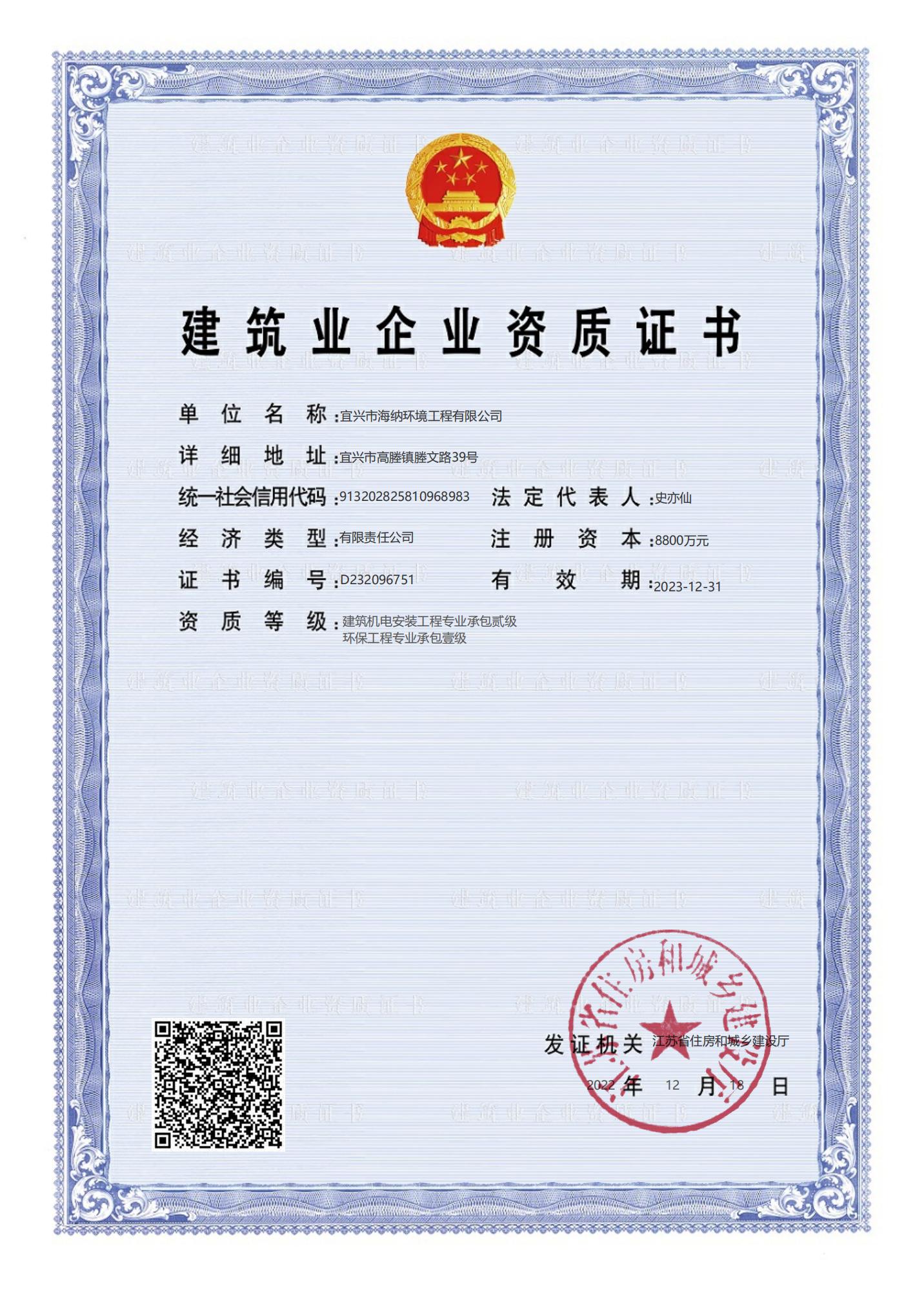 环保***承包一级、机电二级